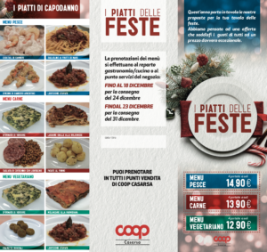 Le prenotazioni dei menù si effettuano al reparto gastronomia/cucina o al punto servizi del negozio: